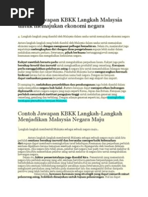 Contoh Jawapan Kbkk Langkah Malaysia Untuk Memajukan Ekonomi Negara