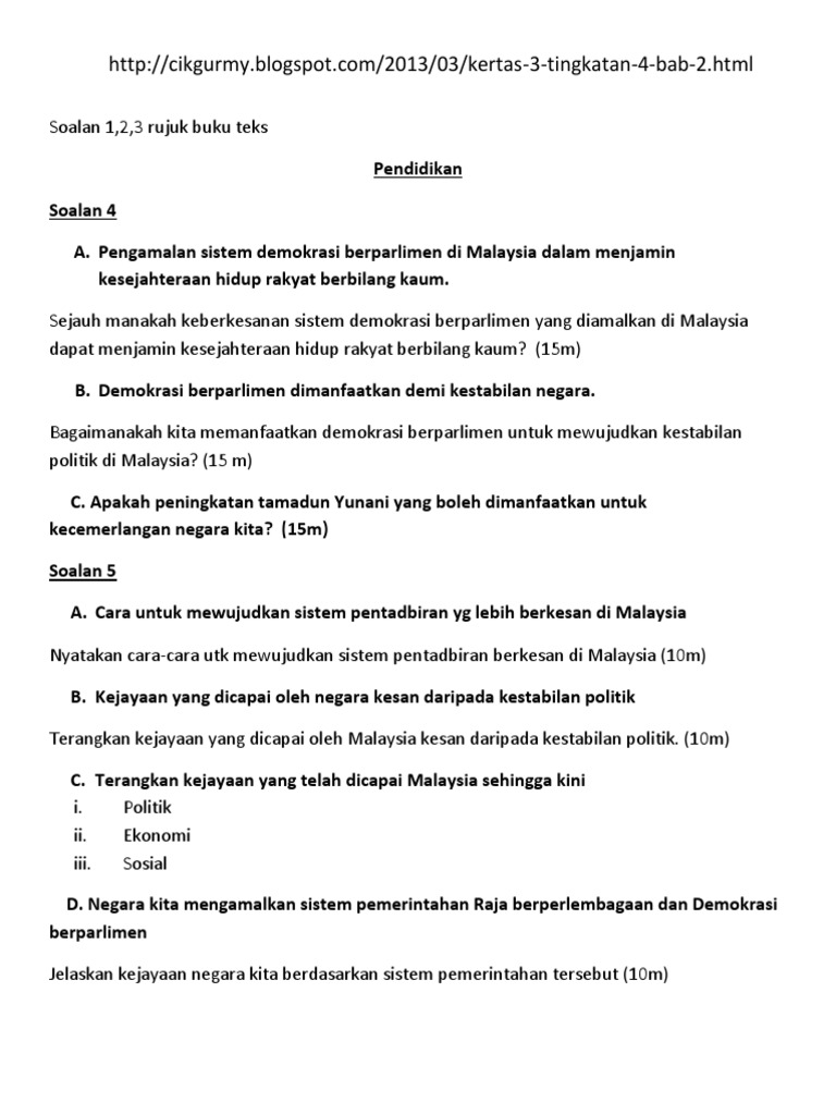 Sistem parlimen menjadikan bahawa Malaysia mengamalkan demokrasi berparlimen. Cadangan Skrip Jawapan Kertas 3 Spm 2014 Bahagian B. Pengetahuan Tentang ciri ciri sistem demokrasi berparlimen Tentang cara mengamalkan a patriotik Kebaikan mengamalkan sistem demokrasi berparlimen 2.